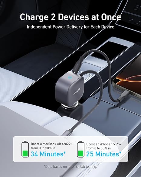 Anker 75W USB-C Car Charger with Built-in Retractable