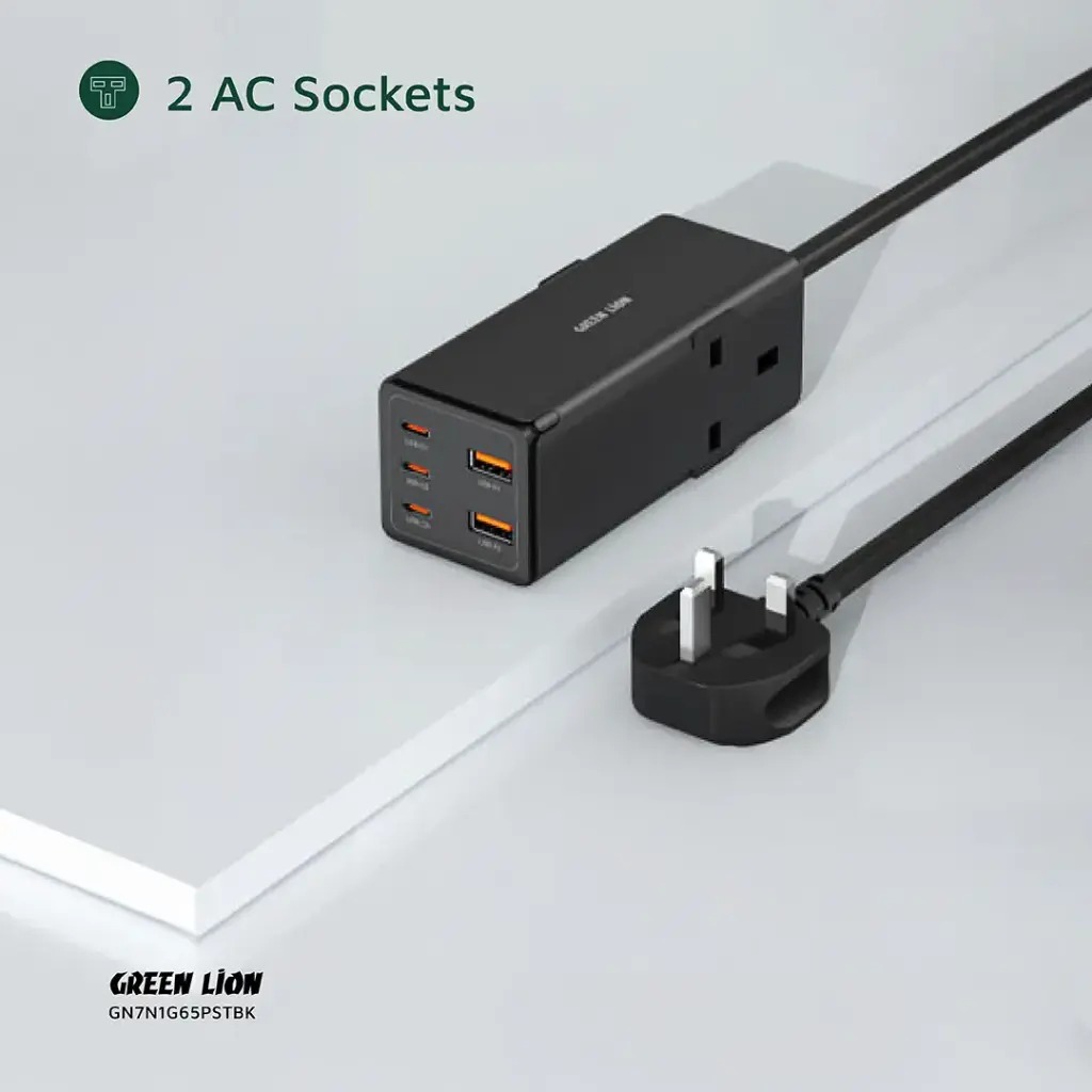 رمز الصنف: 80179شريط الطاقة Green Lion 7 في 1 بتقنية GaN بقدرة 65 واط هو محطة شحن متكاملة مصممة لتحقيق أقصى قدر من الكفاءة والأمان.