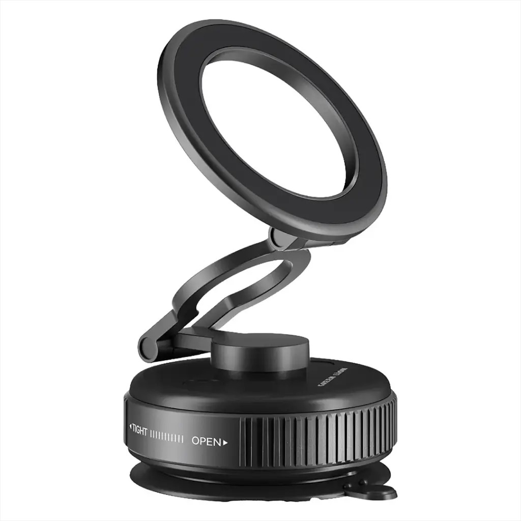 يحتوي الحامل على 20 مغناطيسًا قويًا (N52×20) تثبت الهاتف بإحكام بقوة شفط تصل إلى 1 كجم، مما يضمن عدم انزلاقه حتى مع الحركة. وهو متوافق مع تقنية MagSafe، مما يعني سهولة تثبيته على هاتفك وثباته. بفضل تصميمه القابل للطي والدوران، يوفر الحامل مرونة في زوايا الرؤية، بينما تضمن قاعدته الدوارة ثباتًا قويًا. مزود بكوب شفط قوي، يلتصق حامل الهاتف بسهولة بأي سطح تقريبًا، مما يوفر لهاتفك قاعدة آمنة. يدور الحامل 360 درجة، مما يمنحك تحكمًا كاملًا، ويجعله رفيقًا مثاليًا لمشاهدة مريحة دون استخدام اليدين، سواء كنت في السيارة أو على طاولة أو على أي سطح أملس.