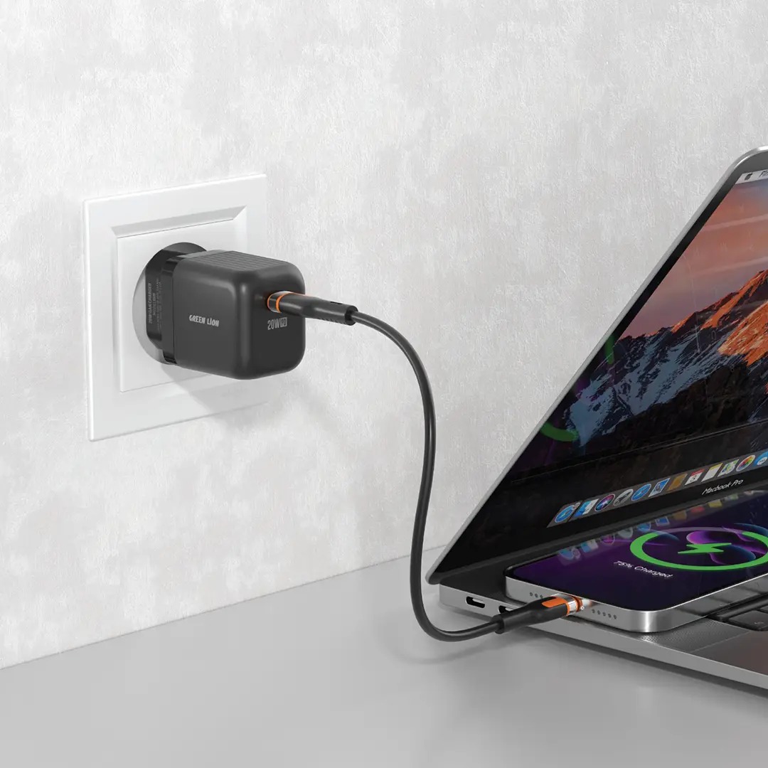 رمز الصنف: 80175شاحن الحائط Green Lion فائق الصغر بتقنية GaN مصمم ليكون فعالاً وآمناً، حيث يوفر شحنًا سريعًا بقدرة 20 واط بتصميم أنيق وصغير الحجم.