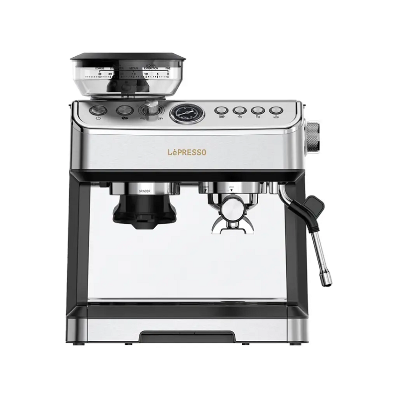 ماكينة Lepresso لتحضير الإسبريسو، مطحنة مخروطية وبخار، هي ماكينة تُقدم إسبريسو احترافيًا وبخارًا كثيفًا في المنزل