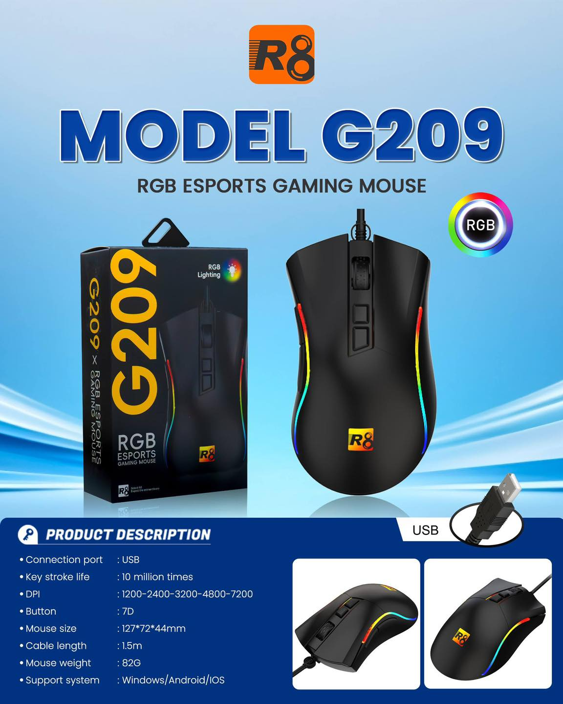 R8 G209 Wired ESPORTS RGB Gaming Mouse