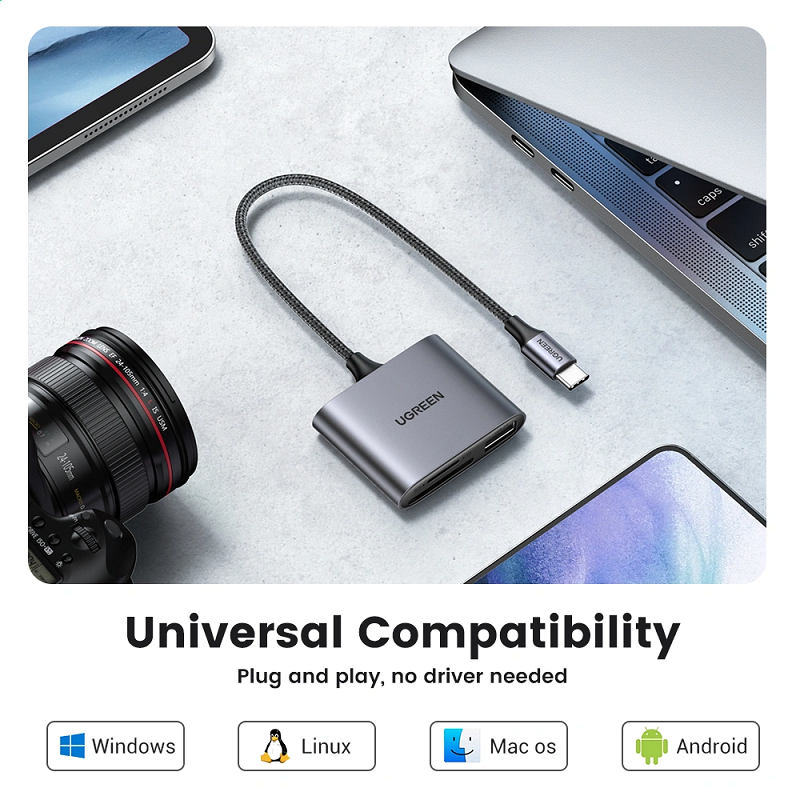 UGREEN USB-C To SD/TF + USB 2.0 Memory Card Reader CM387